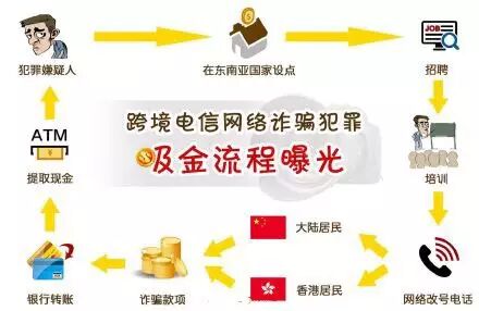 此类犯罪团伙主谋均是台湾籍犯罪嫌疑人,在东南亚国家搭建诈骗电话窝点,招聘、培训台湾、大陆籍犯罪嫌疑人面向中国内地和香港地区居民打诈骗电话,雇请大陆籍犯罪嫌疑人通过网络电话改号软件随意设置显示主叫号码,冒充中联办及大陆执法机关对大陆内地及香港民众进行诈骗。整个诈骗犯罪过程都是由台湾籍犯罪嫌疑人组织策划,一旦诈骗得逞立即对对赃款进行快速转账、提取,其中台湾嫌疑人获取大部分诈骗犯罪所得。